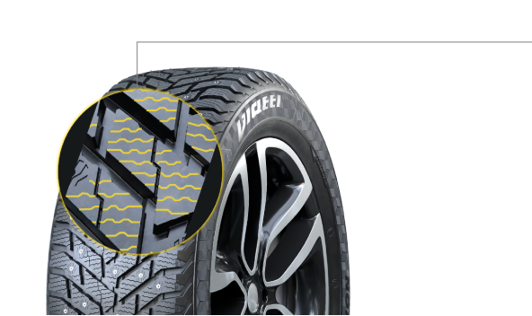 Волнообразная форма ламелей увеличивает длину контакта и позволяет блокам рисунка протектора так же эффективно работать на асфальтовом покрытии в различных режимах движения